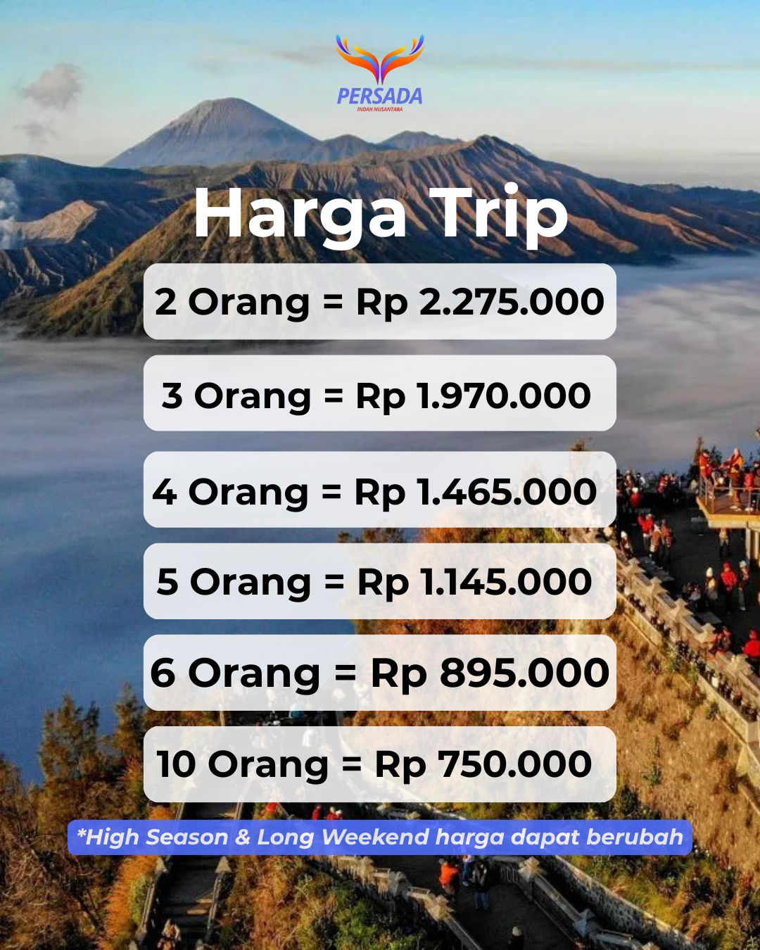 - 2 Orang = Rp. 2.250.000/ Orang