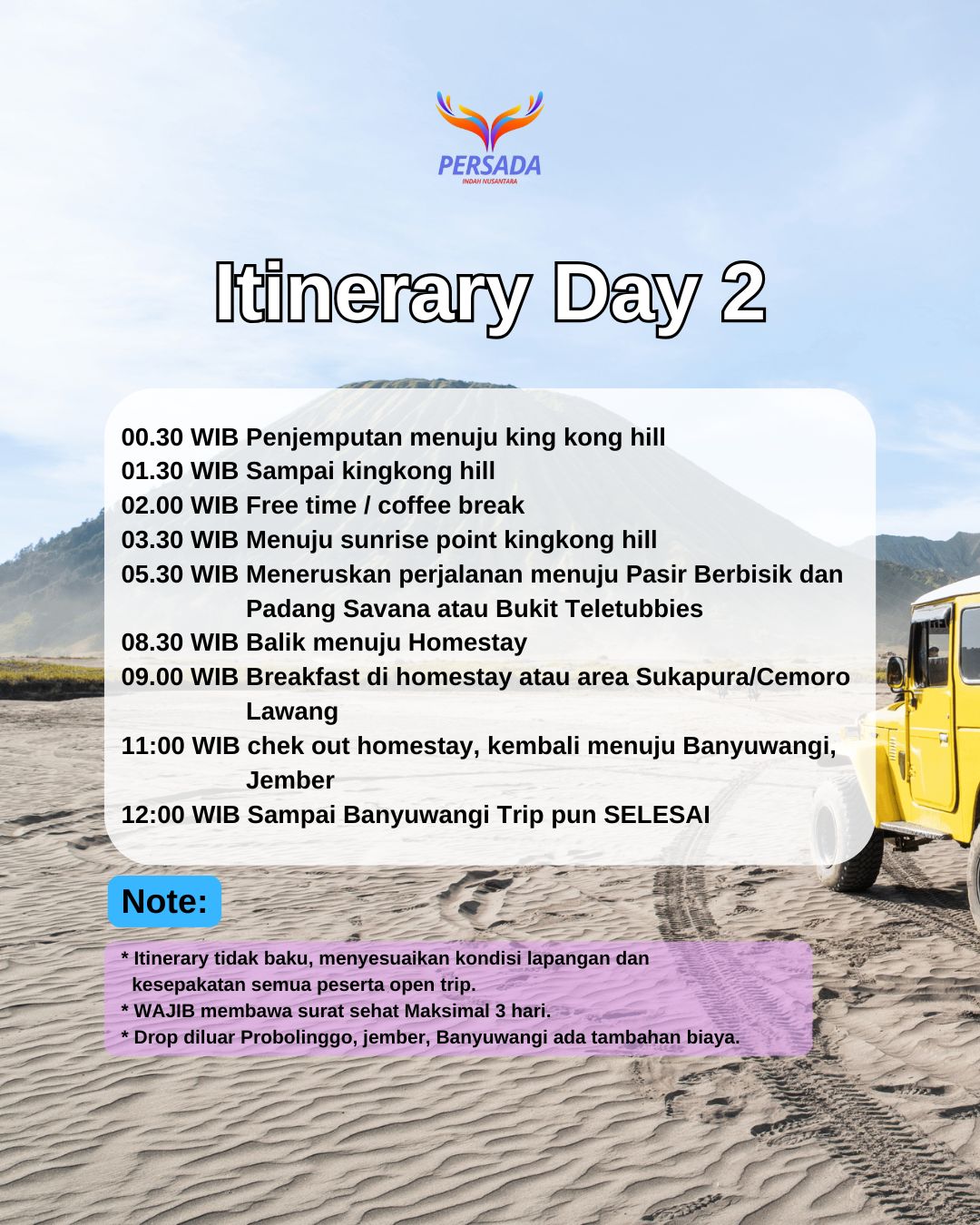 00.00 WIB Penjemputan Peserta Trip (Penginapan/Stasiun/Pelabuhan)